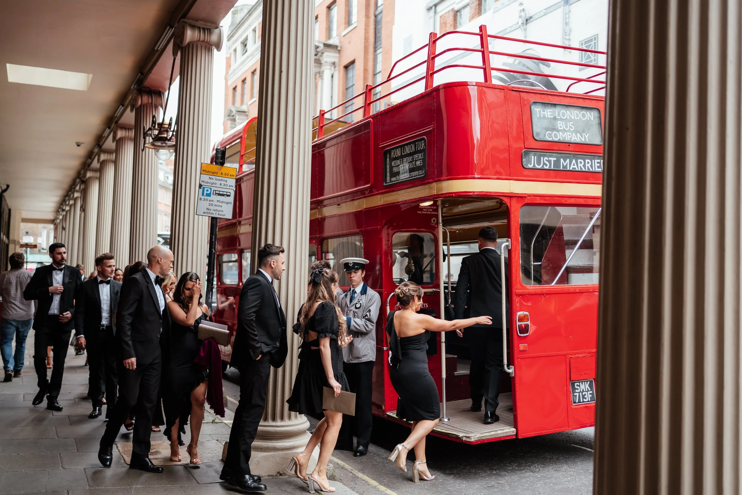 Suppliers: Photographer @weddings.by.emma.olivia Bridal shop @laurenalexandrabridal Dress @verawangbride @verawang Shoes @prada Ceremony - @adaytorememberlondon Reception @amanocoventgarden Saxophonist @mattpearsesax Videographer @macleanvisuals Photography Assistant @hattie.creative Magician @rockstar_magic MUA @rhiabartonmua Hair @bridesbyrose Bus @thelondonbuscompany